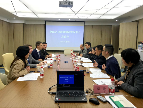 会见会后,葛凯达总领事一行在市科技局科技合作处和院高创中心负责人陪同下,对中匈中心重科智谷“线下服务基地”进行了现场调研,三方就“成渝地区-匈牙利创新合作论坛”筹备方案和首届“一带一路”科技创新合作大会等相关事宜进行了深入的座谈研讨。