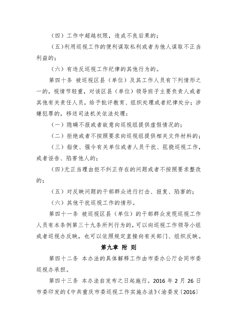 中共重庆市委印发《重庆市实施〈中国共产党巡视工作条例〉办法》