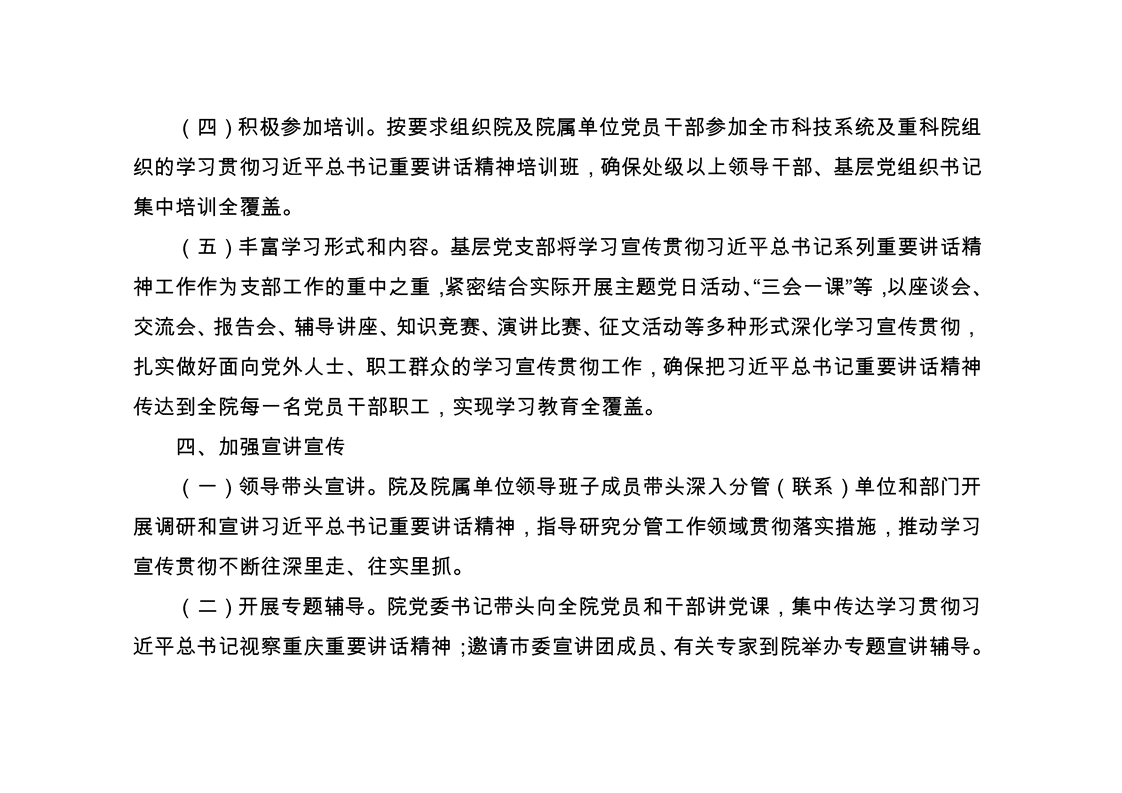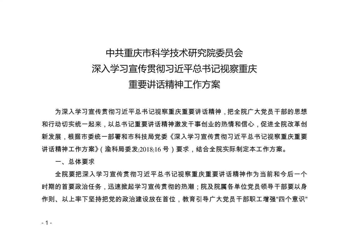 学习资料-重科院《深入学习宣传贯彻习近平总书记视察重庆重要讲话精神工作方案》