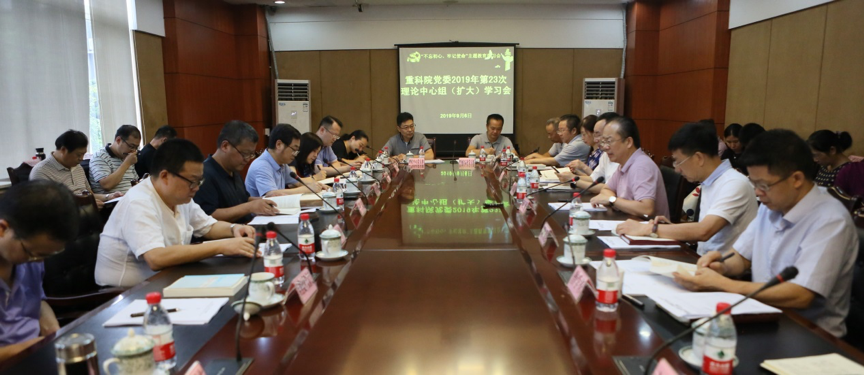 9月6日,何平书记在院301会议室主持召开凯发k8官网2019年第23次理论学习中心组(扩大)学习会。党委副书记、院长梁震出席会议,党委委员刘斌、曾学东、龚亮、石祥聪、杨建华,院属各单位党政主要负责人、机关各团支部书记、各处室(中心)、单位主要负责人等参会。会议学习了《中国共产党党内重要法规汇编》中关于中国共产党廉洁自律准则、中国共产党纪律处分条例、中国共产党问责条例、领导干部干预司法活动、插手具体案件处理的记录、通报和责任追究规定等内容,学习了习近平在深入有助于长江经济带开展座谈会上的重要讲话,传达学习了陈敏尔书记在市委常委“不忘初心、牢记使命”专题民主生活会上的讲话精神,学习了干部选拔任用条例、市委关于进一步激励广大干部新时代新担当新作为的实施意见,传达了市科技局宣传及意识形态专题会精神。刘斌,杨建华、陈晖同志中心发言,于明政等同志现场即席发言。