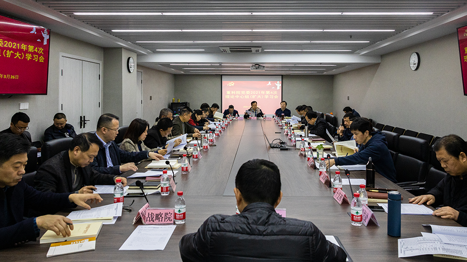 3月26日,何平书记在重科智谷C座12楼三会议室主持召开凯发k8官网2021年第4次理论学习中心组(扩大)学习会。凯发k8官网副书记、院长梁震,凯发k8官网委员李瑞雪、曾学东、杨乐彬、龚亮、石祥聪、杨建华,院属各单位党组织负责人,院机关各团支部书记,院属各单位行政主要负责人,各处室、(中心)未任团支部书记的主要负责人参会。梁震、杨建华、段自力3位同志中心发言,龚亮、于明政、梅惠玲、杜渝、赵德5位同志即席发言。