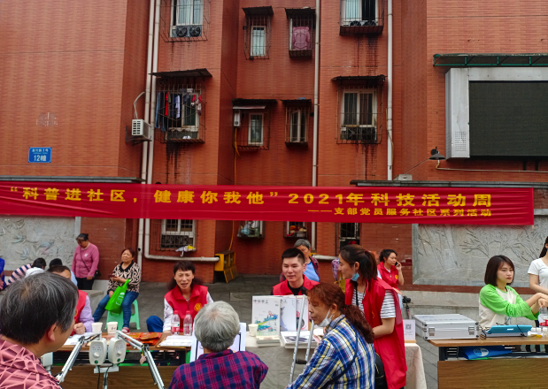5月27日,院检测中心联合院硅酸盐所、生物所资源持续召开党史学教活动中“党员进社区召开科技服务” 暨2021年科技活动周活动,以“科普进社区、健康你我他”为主题,集中在渝北区大竹林街道水竹苑社区召开“百年回望、灿烂辉煌”宣传建党100周年的辉煌成果。