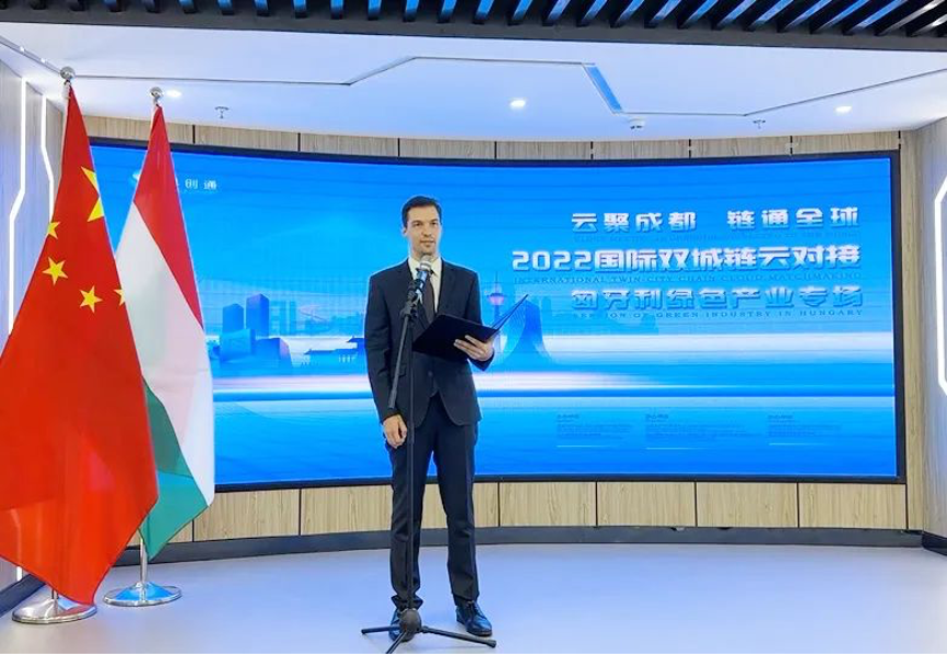 10月27日,由成都市科学技术局(成都市外国专家局)主办,院高创中心公司(中匈技术转移中心)与成都生产力促进中心(成都市国际科技研讨中心)共同承办,成都数字媒体产业化基地有限公司、重庆国际科技合作协会协办的“2022国际双城链云对接匈牙利绿色产业专场活动”成功举办。匈牙利驻重庆总领事馆总领事葛凯达(Gergely Kádár)、成都市科学技术局副局长陈旭出席活动并致辞,共计3.2万余人次在线观看了本次直播。