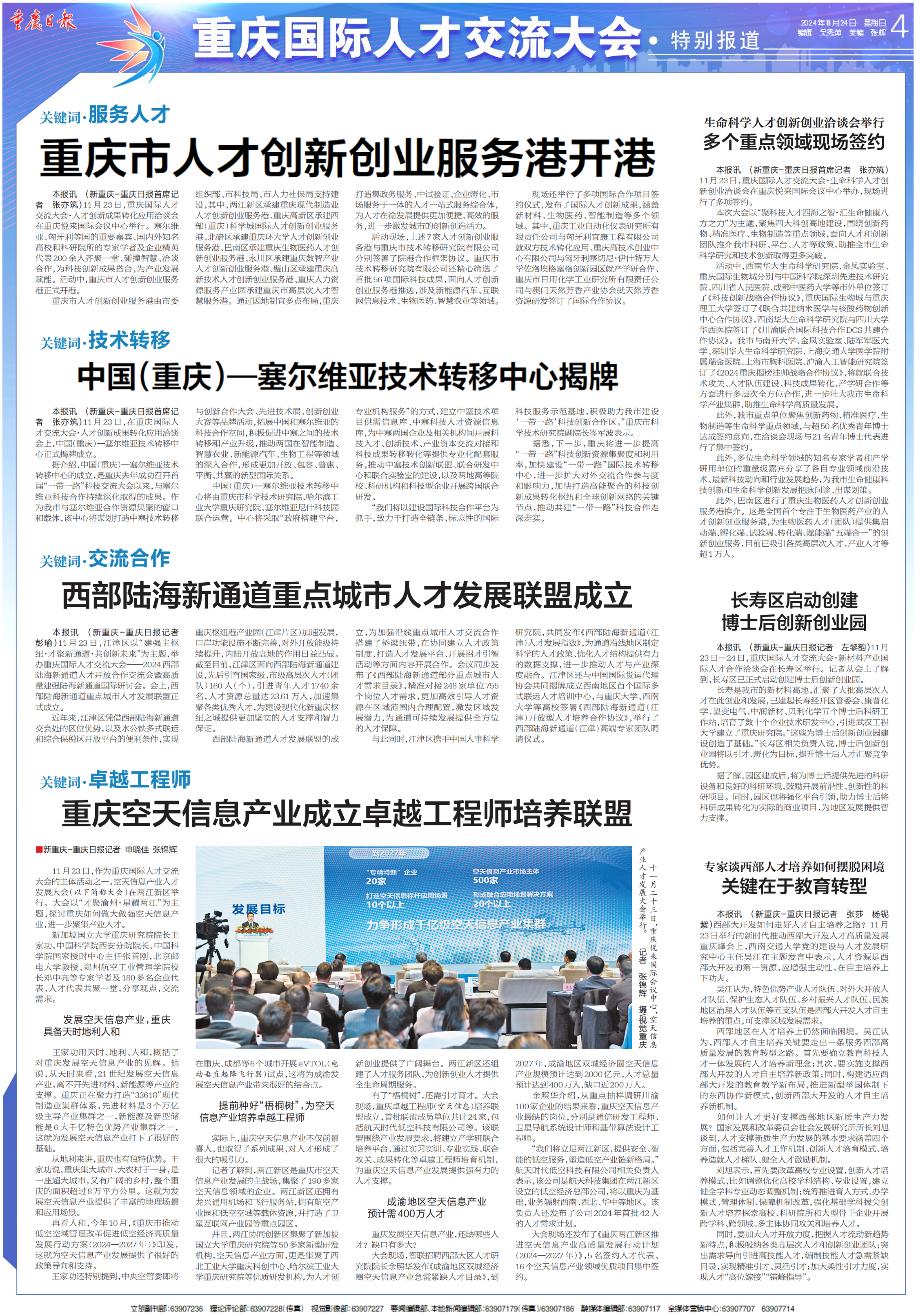 11月23日,重庆国际人才研讨大会·人才创新成果转化应用洽谈会在重庆悦来国际会议中心举行。塞尔维亚、匈牙利等国的重要嘉宾、国内外知名高校和科研院所的专家学者及企业精英代表200余人齐聚一堂、碰撞智慧、洽谈合作,为科技创新成果搭台,为产业开展赋能。活动中,重庆市人才创新创业服务港正式开港。
