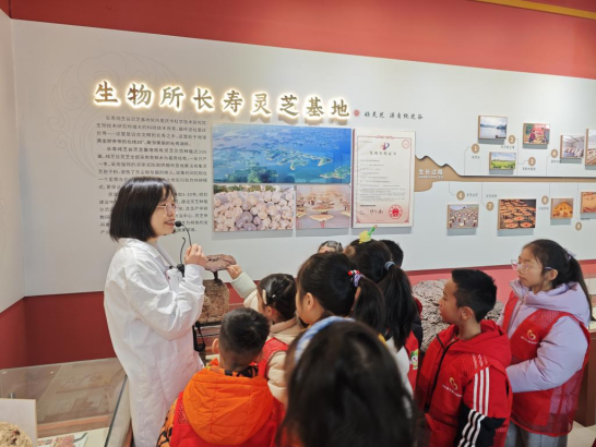 在生物技术研究所展厅,讲解员详细介绍了灵芝的生长周期、人工培育技术、药用价值及相关文化内涵,揭开了这株“仙草”的神秘面纱。现场还设置了灵芝茶品鉴环节,家长与孩子在清香中感受自然馈赠,进一步理解了“尊重自然、顺应自然”的生态理念。